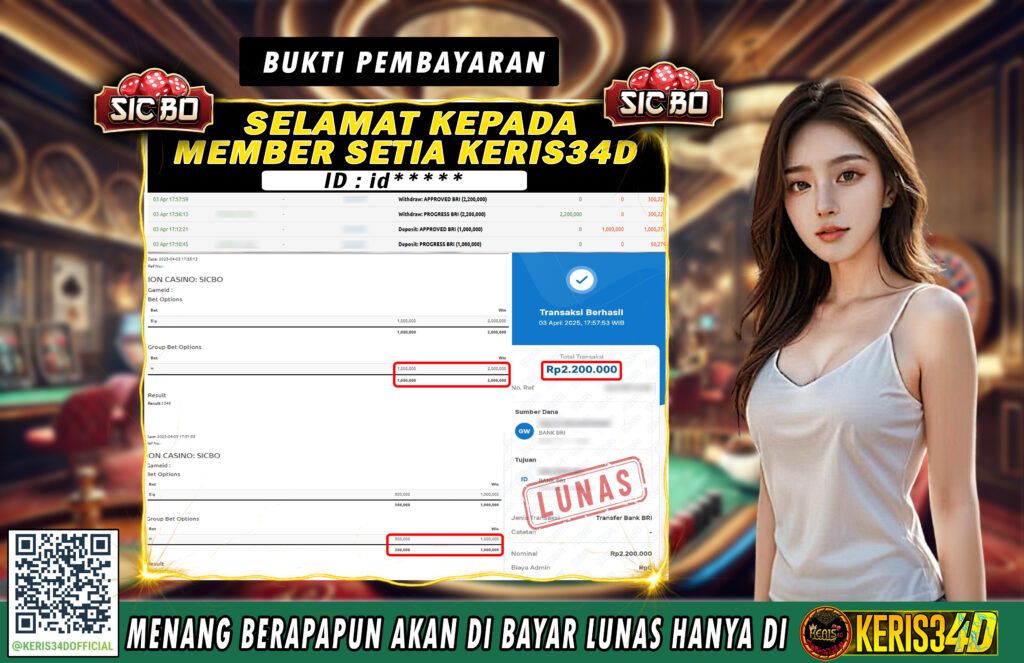 Setiap hari, member KERIS34D berhasil meraih jackpot besar dari berbagai provider slot ternama yang kami sediakan, seperti Pragmatic Play, Habanero, PG Soft, dan masih banyak lagi. Kami secara rutin menampilkan bukti screenshot atau rekapan kemenangan yang berhasil diraih, mulai dari kemenangan ratusan ribu hingga puluhan juta rupiah. Semua slip kemenangan ini kami hadirkan untuk membuktikan bahwa di KERIS34D, peluang menang itu nyata