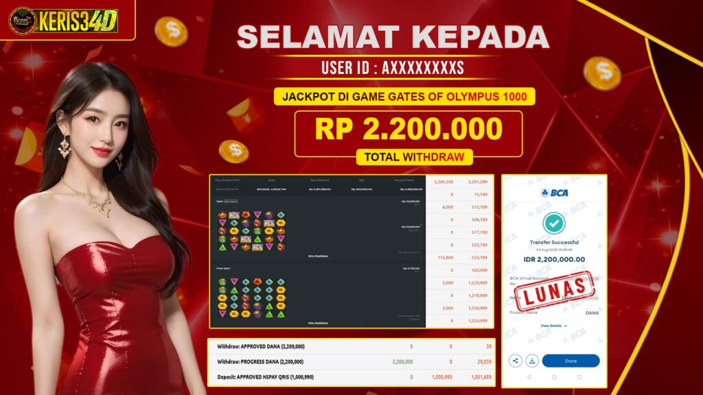Setiap hari, member KERIS34D berhasil meraih jackpot besar dari berbagai provider slot ternama yang kami sediakan, seperti Pragmatic Play, Habanero, PG Soft, dan masih banyak lagi. Kami secara rutin menampilkan bukti screenshot atau rekapan kemenangan yang berhasil diraih, mulai dari kemenangan ratusan ribu hingga puluhan juta rupiah. Semua slip kemenangan ini kami hadirkan untuk membuktikan bahwa di KERIS34D, peluang menang itu nyata