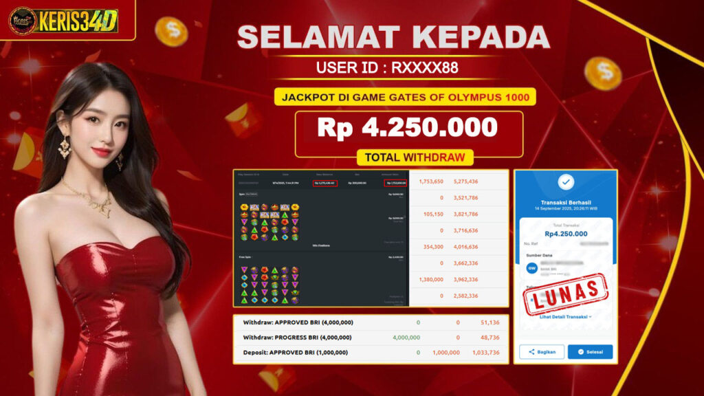 Setiap hari, member KERIS34D berhasil meraih jackpot besar dari berbagai provider slot ternama yang kami sediakan, seperti Pragmatic Play, Habanero, PG Soft, dan masih banyak lagi. Kami secara rutin menampilkan bukti screenshot atau rekapan kemenangan yang berhasil diraih, mulai dari kemenangan ratusan ribu hingga puluhan juta rupiah. Semua slip kemenangan ini kami hadirkan untuk membuktikan bahwa di KERIS34D, peluang menang itu nyata