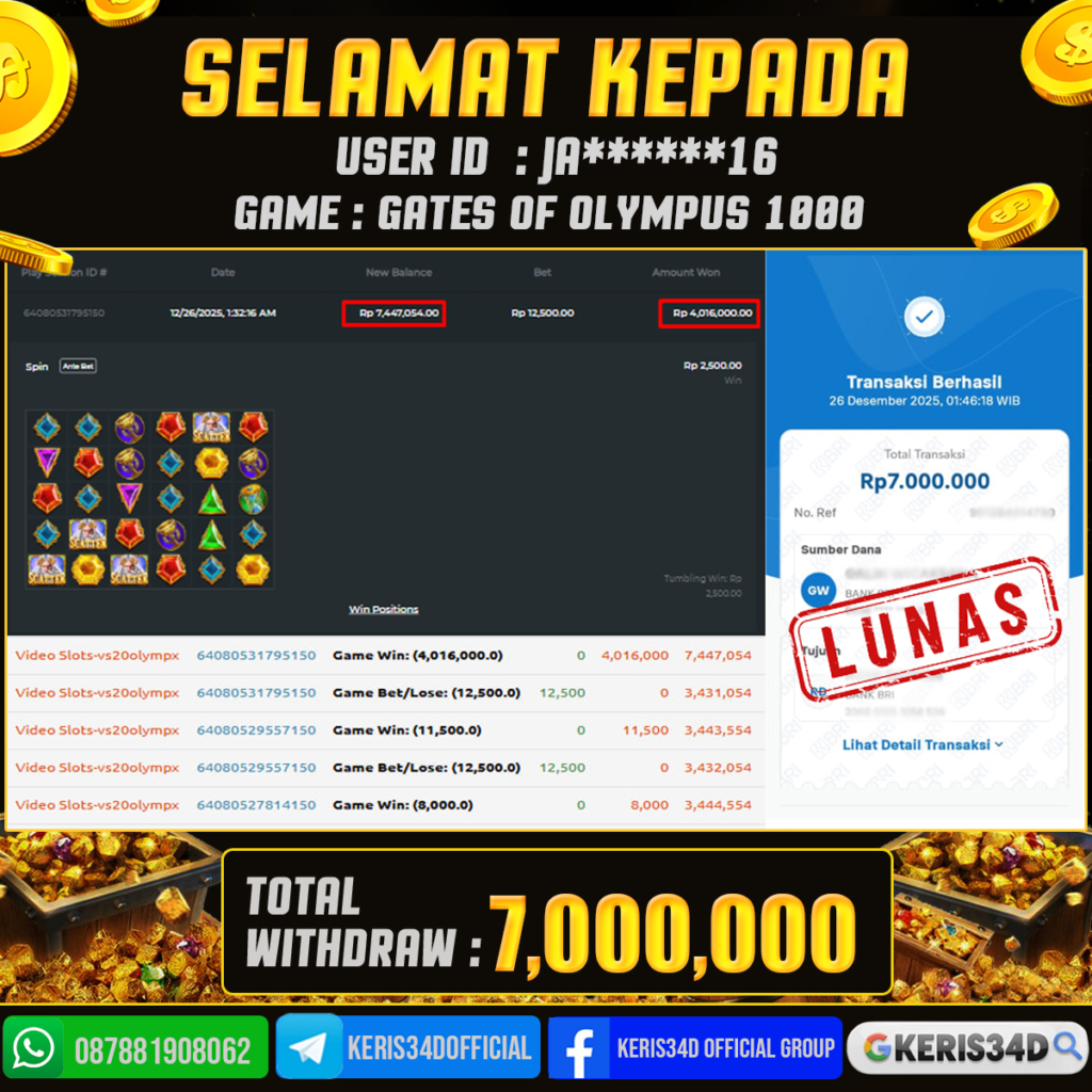 TOTAL KEMENANGAN : Rp. 7.000.000