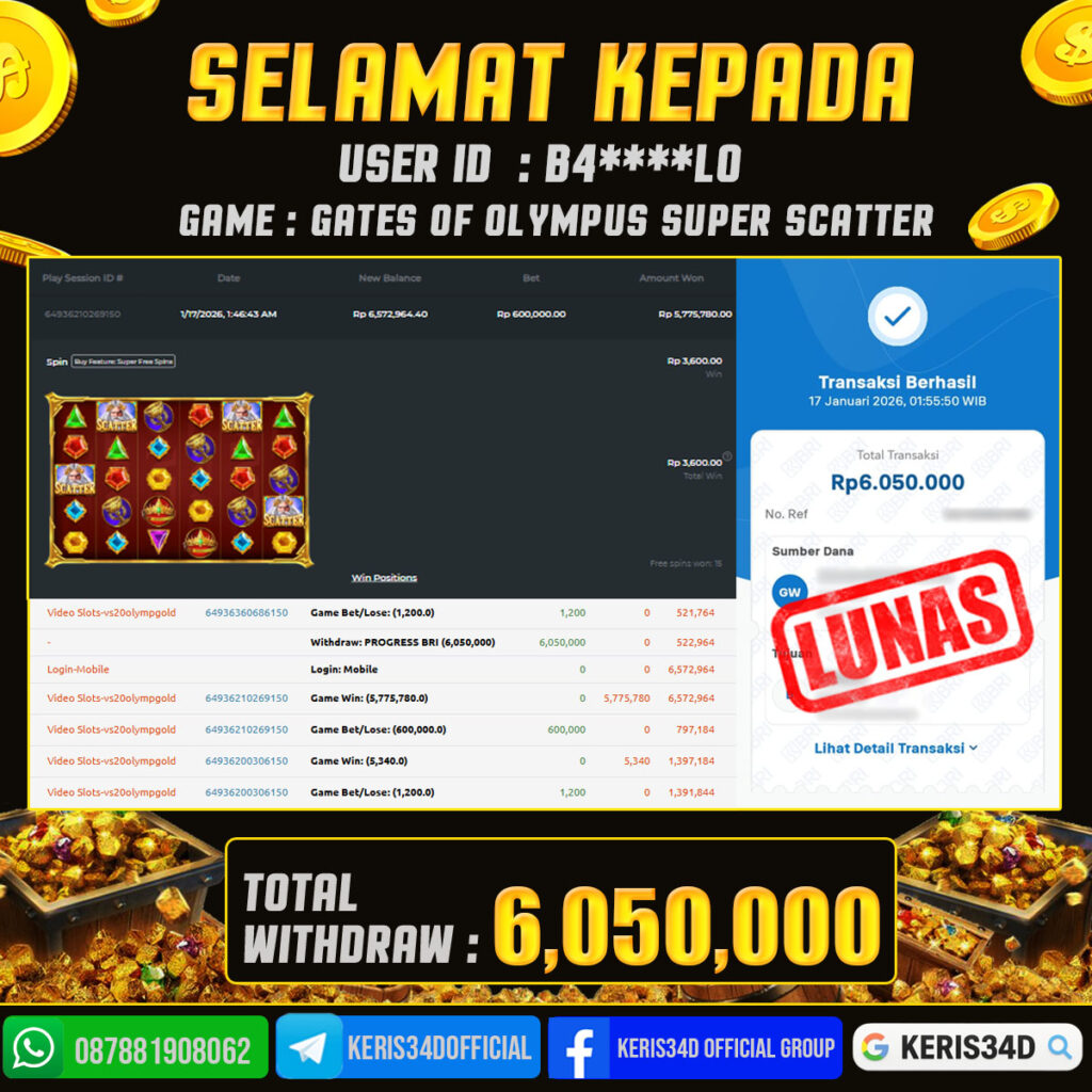 KERIS34D dikenal sebagai situs terpercaya yang selalu menghadirkan pengalaman bermain slot online yang aman, fair, dan berlisensi resmi. Di sini, kami tidak hanya sekadar memberikan janji, tapi bukti nyata berupa slip kemenangan yang dapat Anda lihat secara langsung.