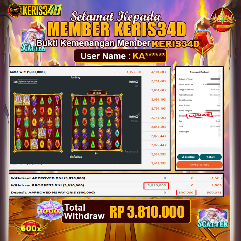 KERIS34D dikenal sebagai situs terpercaya yang selalu menghadirkan pengalaman bermain slot online yang aman, fair, dan berlisensi resmi. Di sini, kami tidak hanya sekadar memberikan janji, tapi bukti nyata berupa slip kemenangan yang dapat Anda lihat secara langsung.