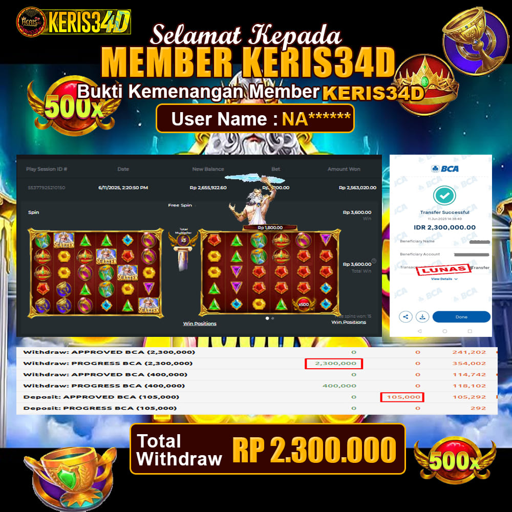 SSetiap hari, member KERIS34D berhasil meraih jackpot besar dari berbagai provider slot ternama yang kami sediakan, seperti Pragmatic Play, Habanero, PG Soft, dan masih banyak lagi. Kami secara rutin menampilkan bukti screenshot atau rekapan kemenangan yang berhasil diraih, mulai dari kemenangan ratusan ribu hingga puluhan juta rupiah. Semua slip kemenangan ini kami hadirkan untuk membuktikan bahwa di KERIS34D peluang menang itu nyata