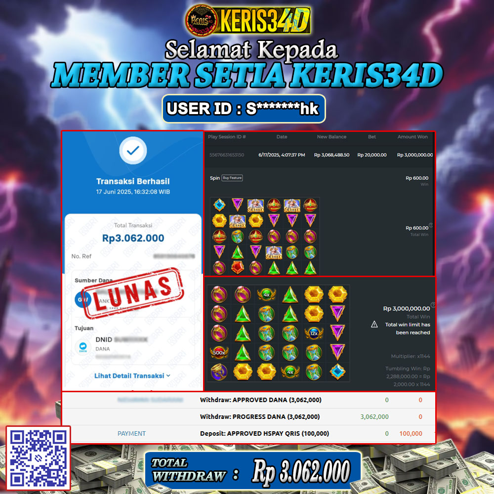 SSetiap hari, member KERIS34D berhasil meraih jackpot besar dari berbagai provider slot ternama yang kami sediakan, seperti Pragmatic Play, Habanero, PG Soft, dan masih banyak lagi. Kami secara rutin menampilkan bukti screenshot atau rekapan kemenangan yang berhasil diraih, mulai dari kemenangan ratusan ribu hingga puluhan juta rupiah. Semua slip kemenangan ini kami hadirkan untuk membuktikan bahwa di KERIS34D peluang menang itu nyata