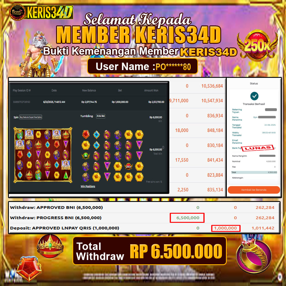 SSetiap hari, member KERIS34D berhasil meraih jackpot besar dari berbagai provider slot ternama yang kami sediakan, seperti Pragmatic Play, Habanero, PG Soft, dan masih banyak lagi. Kami secara rutin menampilkan bukti screenshot atau rekapan kemenangan yang berhasil diraih, mulai dari kemenangan ratusan ribu hingga puluhan juta rupiah. Semua slip kemenangan ini kami hadirkan untuk membuktikan bahwa di KERIS34D peluang menang itu nyata