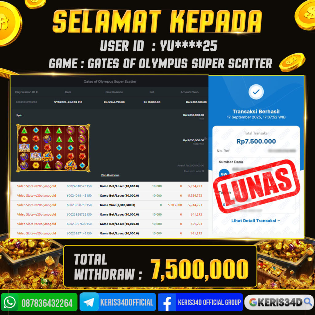 KERIS34D dikenal sebagai situs terpercaya yang selalu menghadirkan pengalaman bermain slot online yang aman, fair, dan berlisensi resmi. Di sini, kami tidak hanya sekadar memberikan janji, tapi bukti nyata berupa slip kemenangan yang dapat Anda lihat secara langsung.