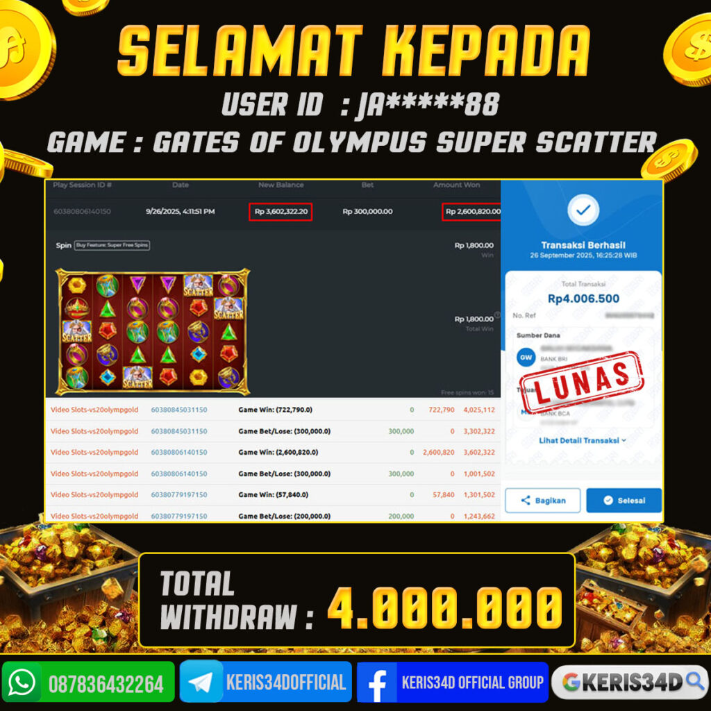 JACKPOT SLOT GACOR GATES OF OLYMPUS SUPER SCATTER 26 SEPTEMBER 2025, Jackpot Slot Gacor, Kemenangan Slot, Bukti Kemenangan Slot, Kemenangan PRAGMATIC PLAY, Menang Slot online, Slot Gacor, Situs Aman Terpercaya, WD Berapapun Pasti DI Bayar Tuntas, Maxwin Slot Online.