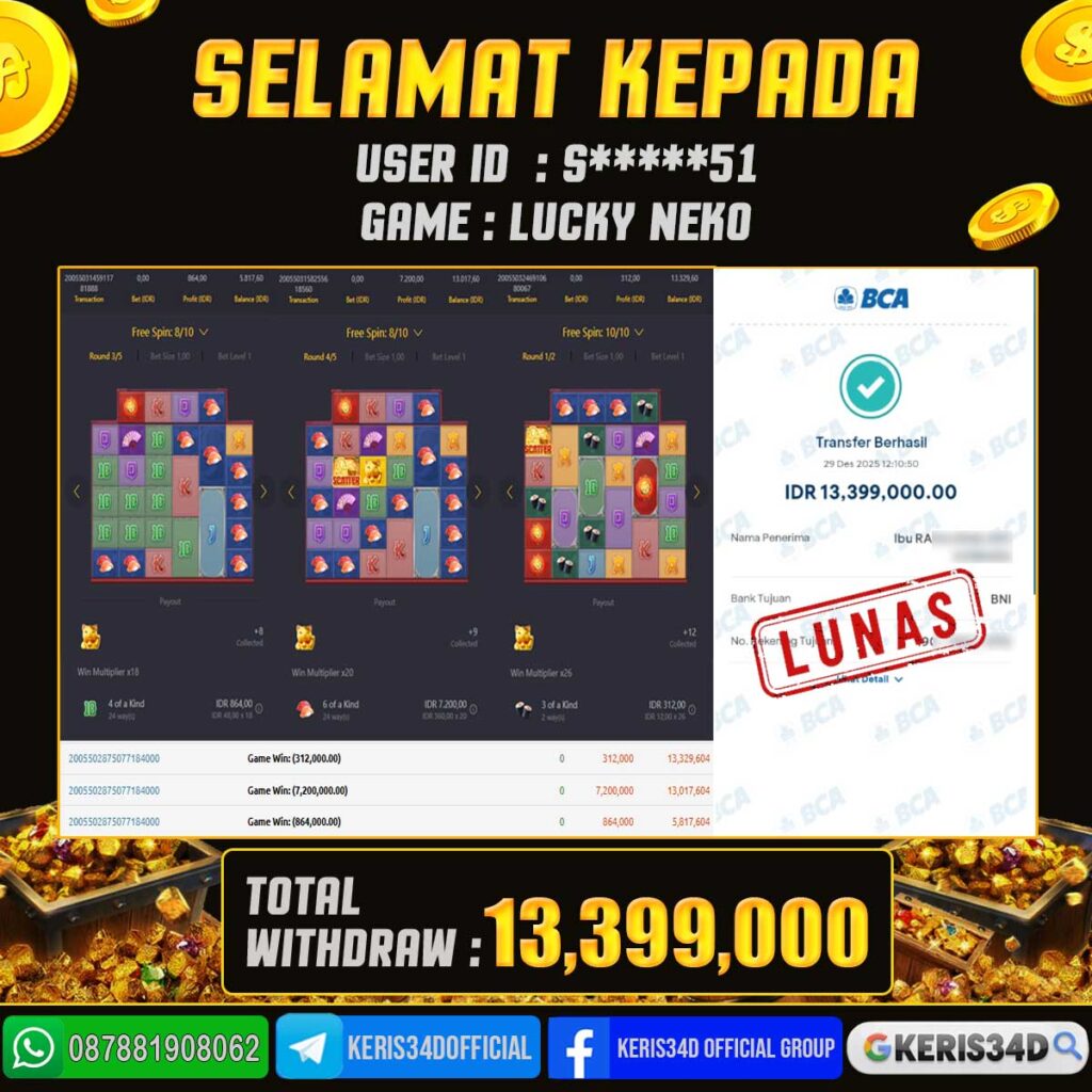 JACKPOT SLOT GACOR MAIN LUCKY NEKO 29 DESEMBER 2025, Jackpot Slot Gacor, Kemenangan Slot, Bukti Kemenangan Slot, Kemenangan PGSOFT, Menang Slot online, Slot Gacor, Situs Aman Terpercaya, WD Berapapun Pasti DI Bayar Tuntas, Maxwin Slot Online.
