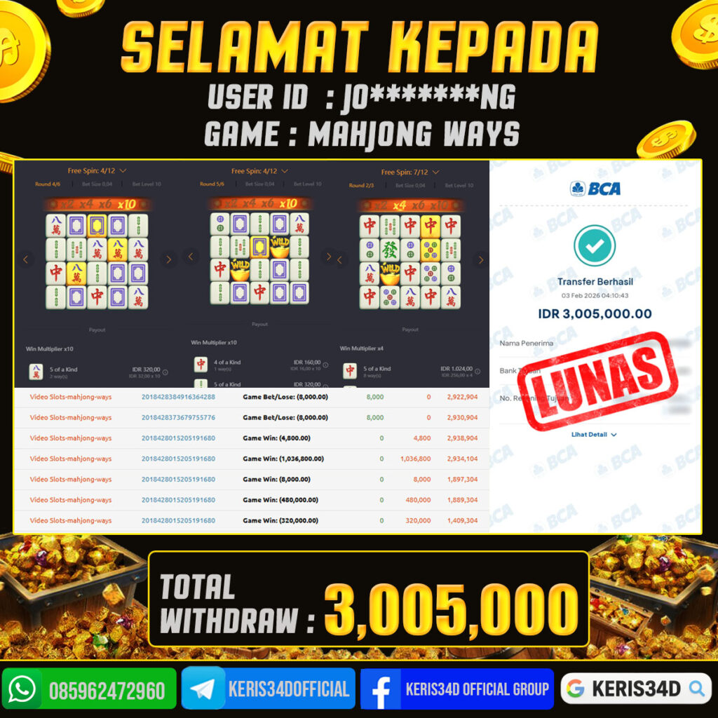 JACKPOT SLOT GACOR MAIN MAHJONG WAYS 03 FEBRUARI 2026