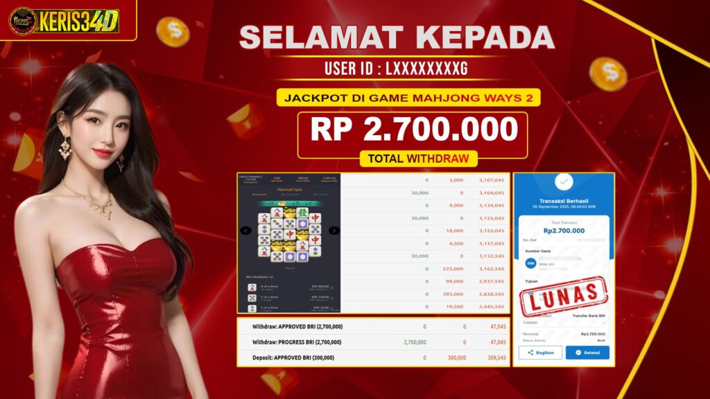 Setiap hari, member KERIS34D berhasil meraih jackpot besar dari berbagai provider slot ternama yang kami sediakan, seperti Pragmatic Play, Habanero, PG Soft, dan masih banyak lagi. Kami secara rutin menampilkan bukti screenshot atau rekapan kemenangan yang berhasil diraih, mulai dari kemenangan ratusan ribu hingga puluhan juta rupiah. Semua slip kemenangan ini kami hadirkan untuk membuktikan bahwa di KERIS34D, peluang menang itu nyata