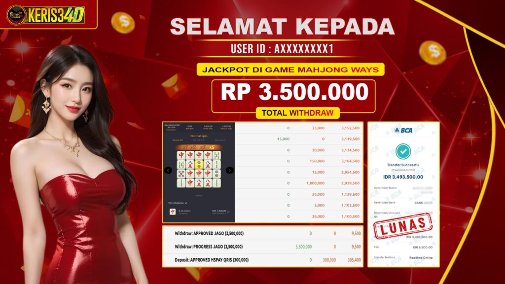 Setiap hari, member KERIS34D berhasil meraih jackpot besar dari berbagai provider slot ternama yang kami sediakan, seperti Pragmatic Play, Habanero, PG Soft, dan masih banyak lagi. Kami secara rutin menampilkan bukti screenshot atau rekapan kemenangan yang berhasil diraih, mulai dari kemenangan ratusan ribu hingga puluhan juta rupiah. Semua slip kemenangan ini kami hadirkan untuk membuktikan bahwa di KERIS34D, peluang menang itu nyata