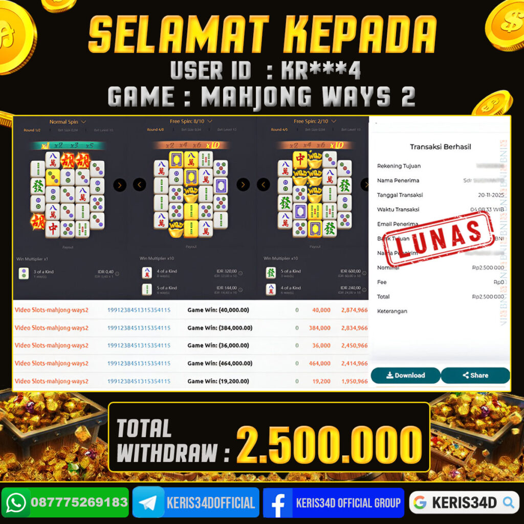 JACKPOT SLOT GACOR MAIN MAHJONG WAYS 2 20 NOVEMBER 2025