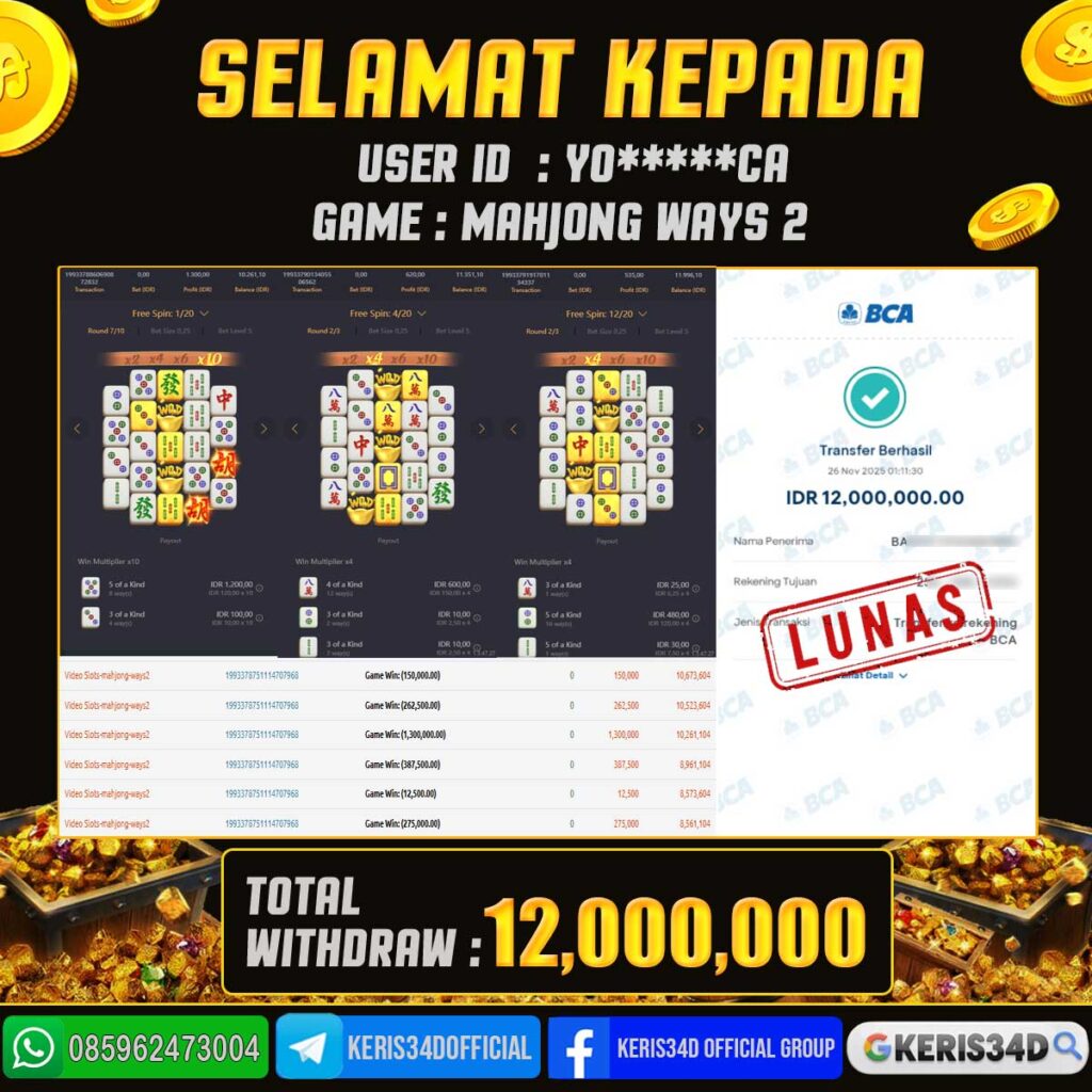 JACKPOT SLOT GACOR MAIN MAHJONG WAYS 2 26 NOVEMBER 2025