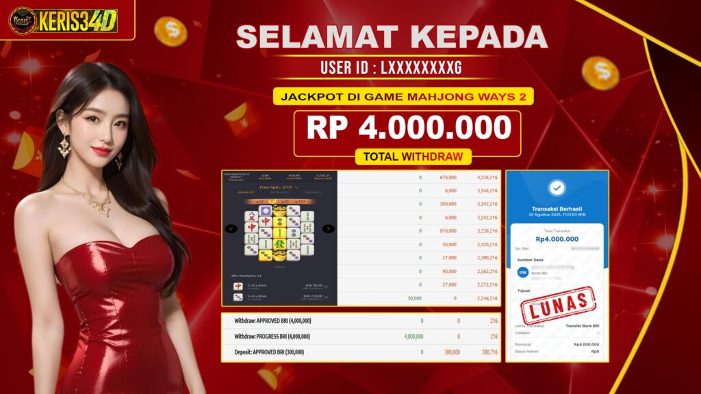 KERIS34D dikenal sebagai situs terpercaya yang selalu menghadirkan pengalaman bermain slot online yang aman, fair, dan berlisensi resmi. Di sini, kami tidak hanya sekadar memberikan janji, tapi bukti nyata berupa slip kemenangan yang dapat Anda lihat secara langsung.