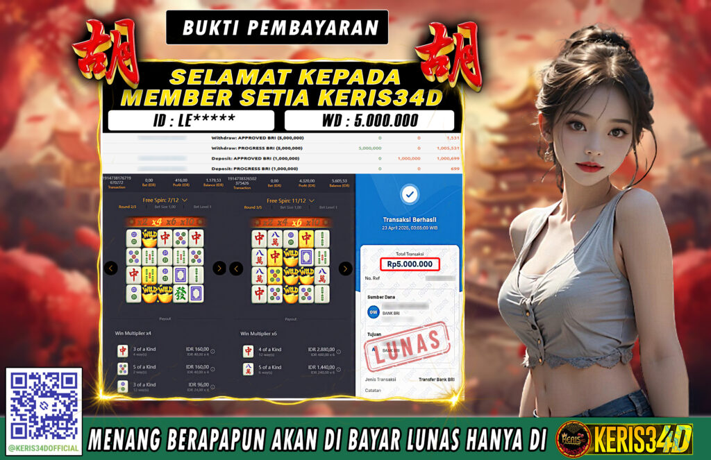 Setiap hari, member KERIS34D berhasil meraih jackpot besar dari berbagai provider slot ternama yang kami sediakan, seperti Pragmatic Play, Habanero, PG Soft, dan masih banyak lagi. Kami secara rutin menampilkan bukti screenshot atau rekapan kemenangan yang berhasil diraih, mulai dari kemenangan ratusan ribu hingga puluhan juta rupiah. Semua slip kemenangan ini kami hadirkan untuk membuktikan bahwa di KERIS34D, peluang menang itu nyata