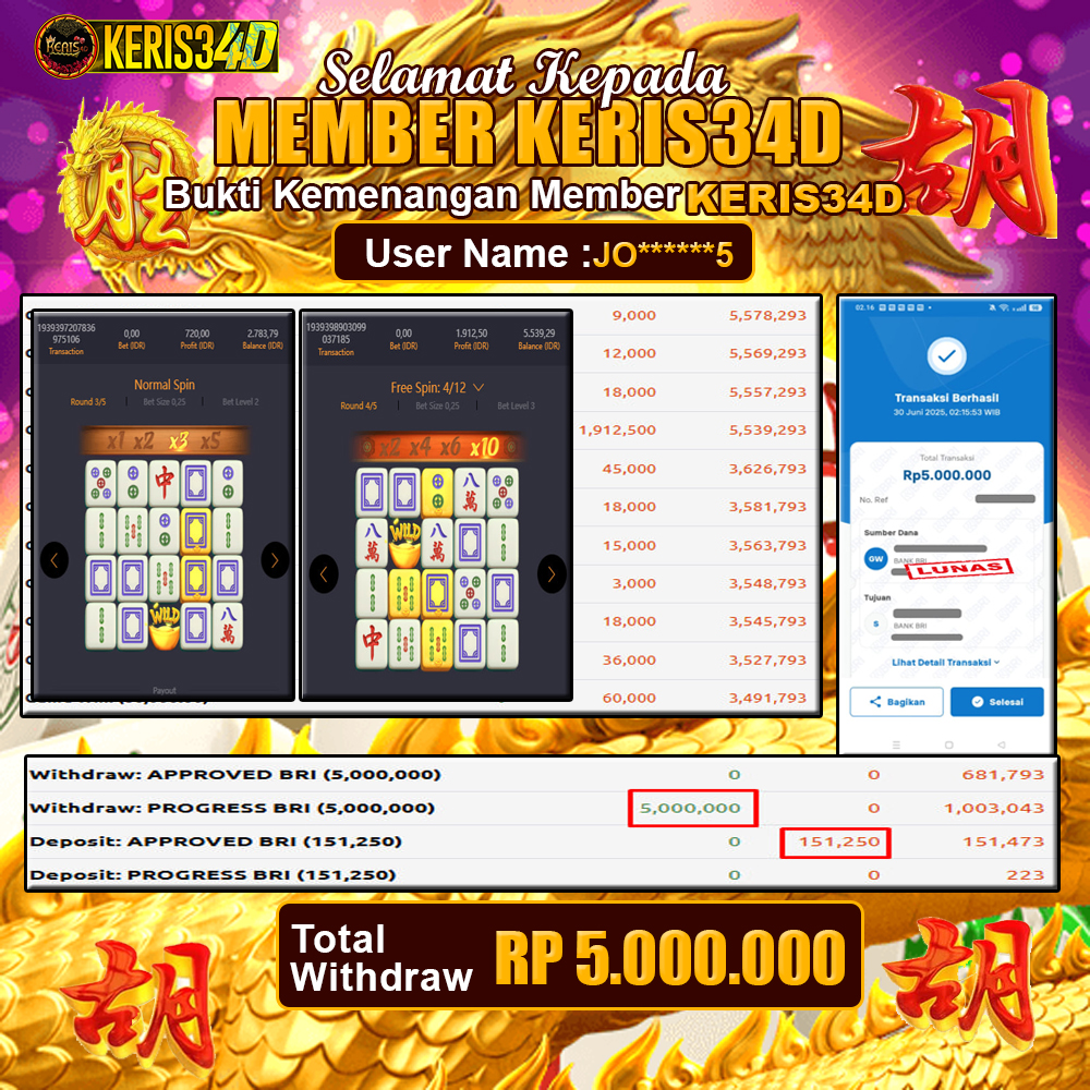 Setiap hari, member KERIS34D berhasil meraih jackpot besar dari berbagai provider slot ternama yang kami sediakan, seperti Pragmatic Play, Habanero, PG Soft, dan masih banyak lagi. Kami secara rutin menampilkan bukti screenshot atau rekapan kemenangan yang berhasil diraih, mulai dari kemenangan ratusan ribu hingga puluhan juta rupiah. Semua slip kemenangan ini kami hadirkan untuk membuktikan bahwa di KERIS34D, peluang menang itu nyata