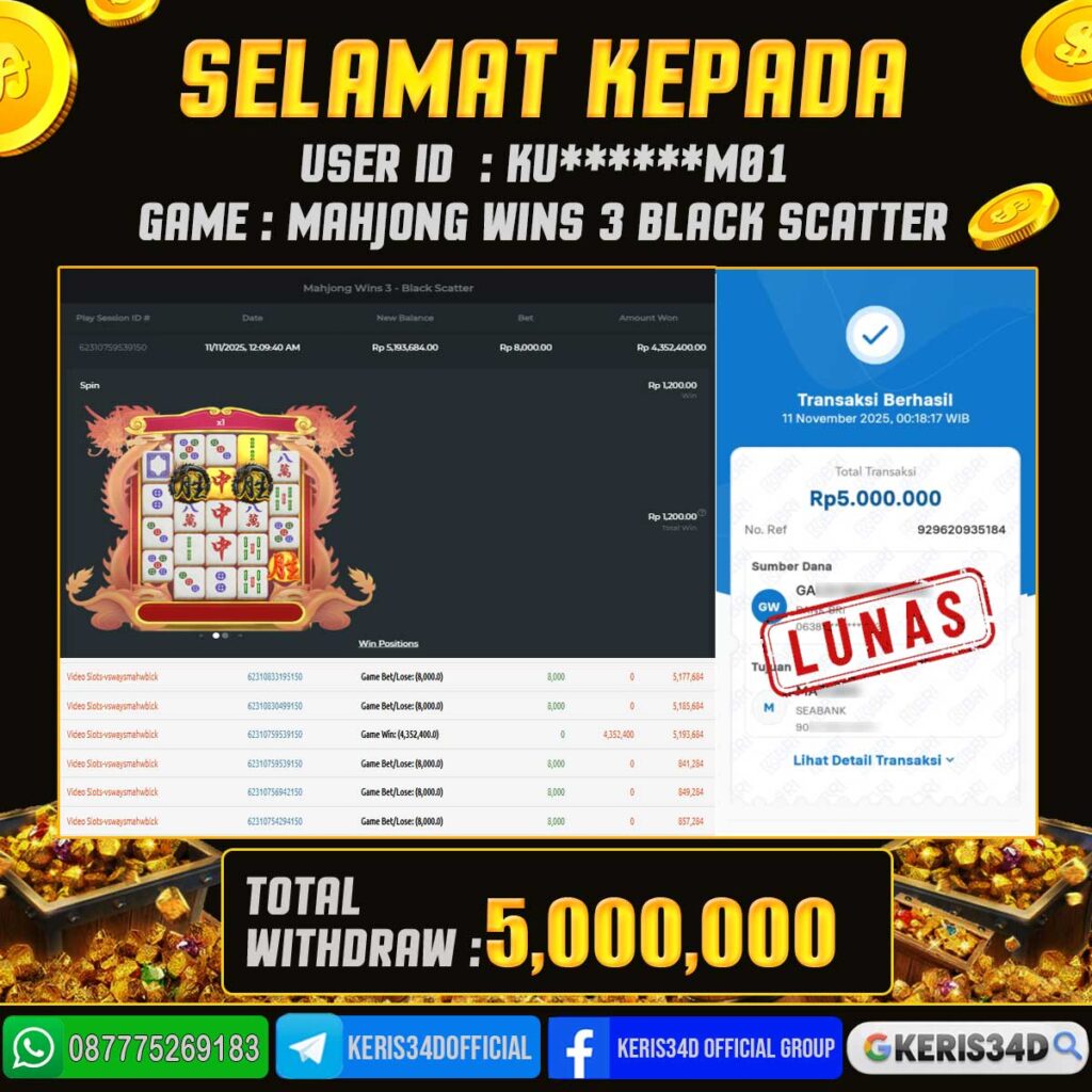 JACKPOT SLOT GACOR MAIN MAHJONG WINS 3 – BLACK 11 NOVEMBER 2025, Jackpot Slot Gacor, Kemenangan Slot, Bukti Kemenangan Slot, Kemenangan PRAGMATIC, Menang Slot online, Slot Gacor, Situs Aman Terpercaya, WD Berapapun Pasti DI Bayar Tuntas, Maxwin Slot Online.