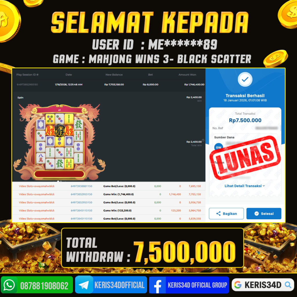 JACKPOT SLOT GACOR MAIN MAHJONG WINS 3 BLACK SCATTER 18 JANUARI 2026, Jackpot Slot Gacor, Kemenangan Slot, Bukti Kemenangan Slot, Kemenangan PRAGMATIC PLAY, Menang Slot online, Slot Gacor, Situs Aman Terpercaya, WD Berapapun Pasti DI Bayar Tuntas, Maxwin Slot Online.