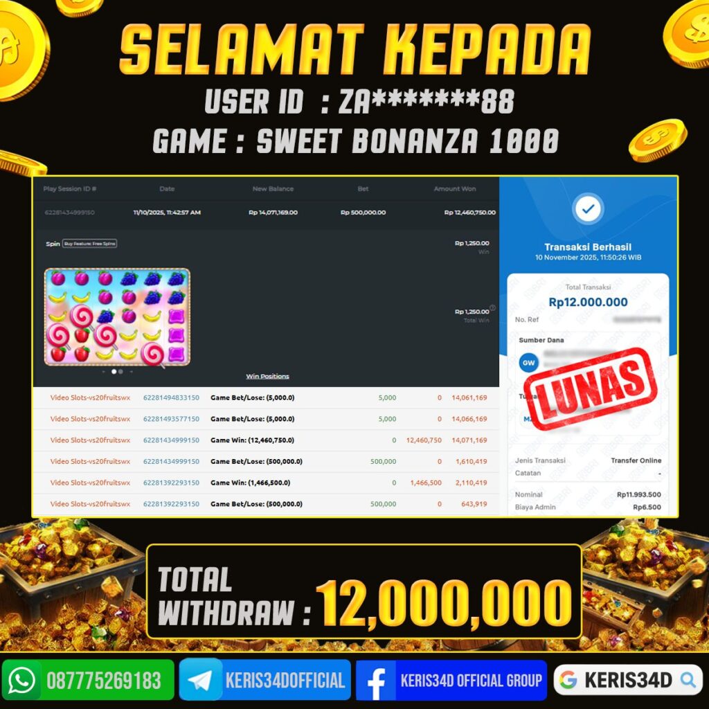 Setiap hari, member KERIS34D berhasil meraih jackpot besar dari berbagai provider slot ternama yang kami sediakan, seperti Pragmatic Play, Habanero, PG Soft, dan masih banyak lagi. Kami secara rutin menampilkan bukti screenshot atau rekapan kemenangan yang berhasil diraih, mulai dari kemenangan ratusan ribu hingga puluhan juta rupiah. Semua slip kemenangan ini kami hadirkan untuk membuktikan bahwa di KERIS34D, peluang menang itu nyata