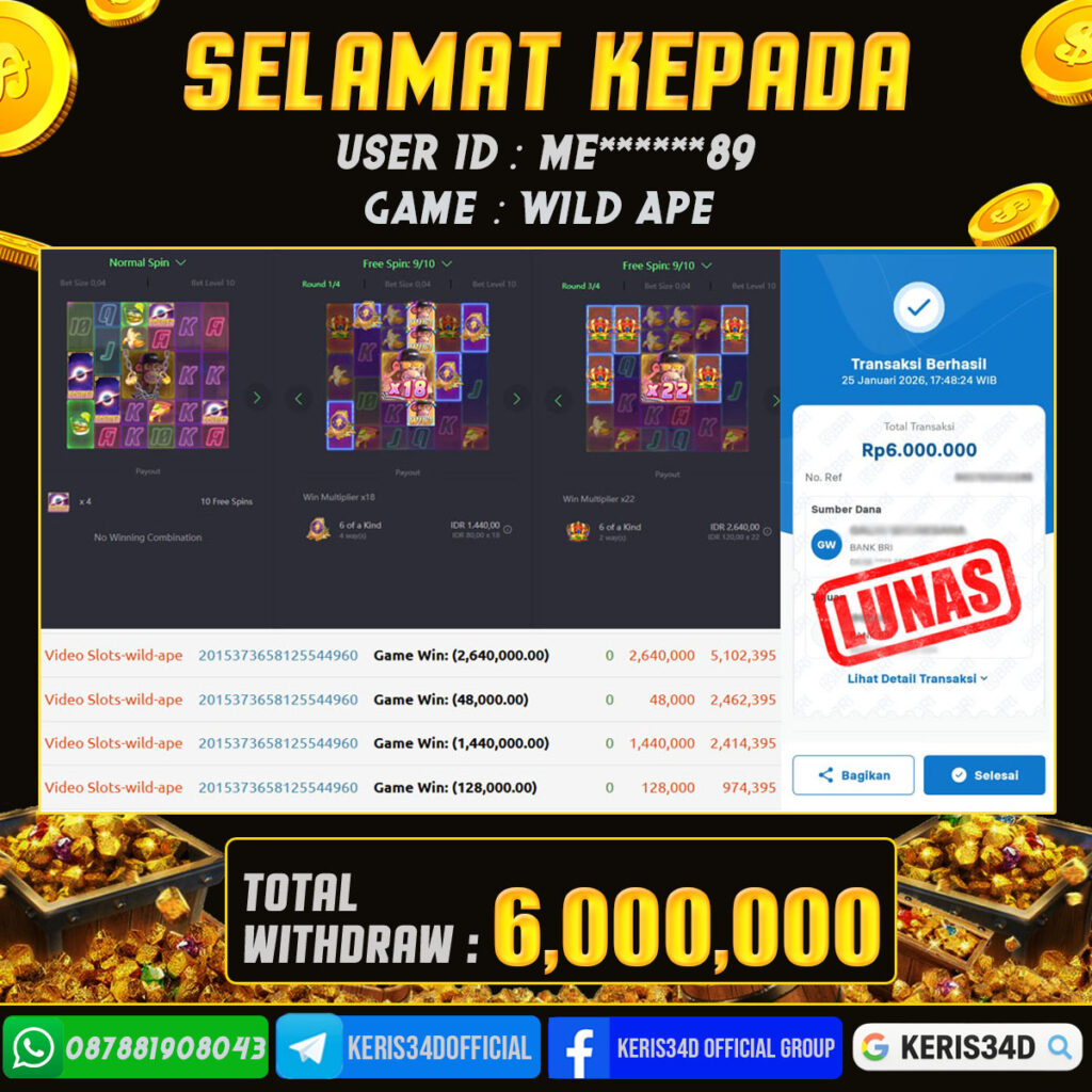 JACKPOT SLOT GACOR MAIN WILD APE 25 JANUARI 2026