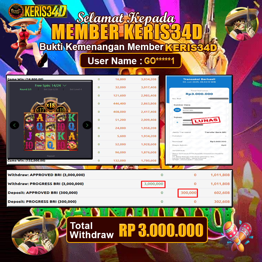 Setiap hari, member KERIS34D berhasil meraih jackpot besar dari berbagai provider slot ternama yang kami sediakan, seperti Pragmatic Play, Habanero, PG Soft, dan masih banyak lagi. Kami secara rutin menampilkan bukti screenshot atau rekapan kemenangan yang berhasil diraih, mulai dari kemenangan ratusan ribu hingga puluhan juta rupiah. Semua slip kemenangan ini kami hadirkan untuk membuktikan bahwa di KERIS34D, peluang menang itu nyata