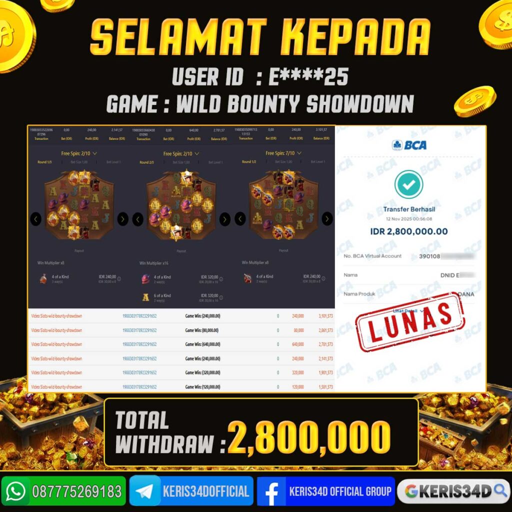 JACKPOT SLOT GACOR MAIN WILD BOUNTY SHOWDOWN 12 NOVEMBER 2025
