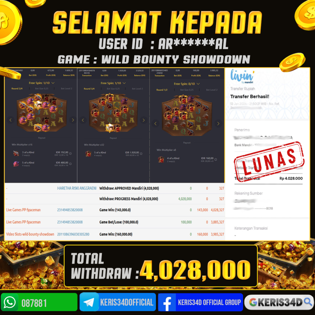 TOTAL KEMENANGAN : Rp. 4.028.000