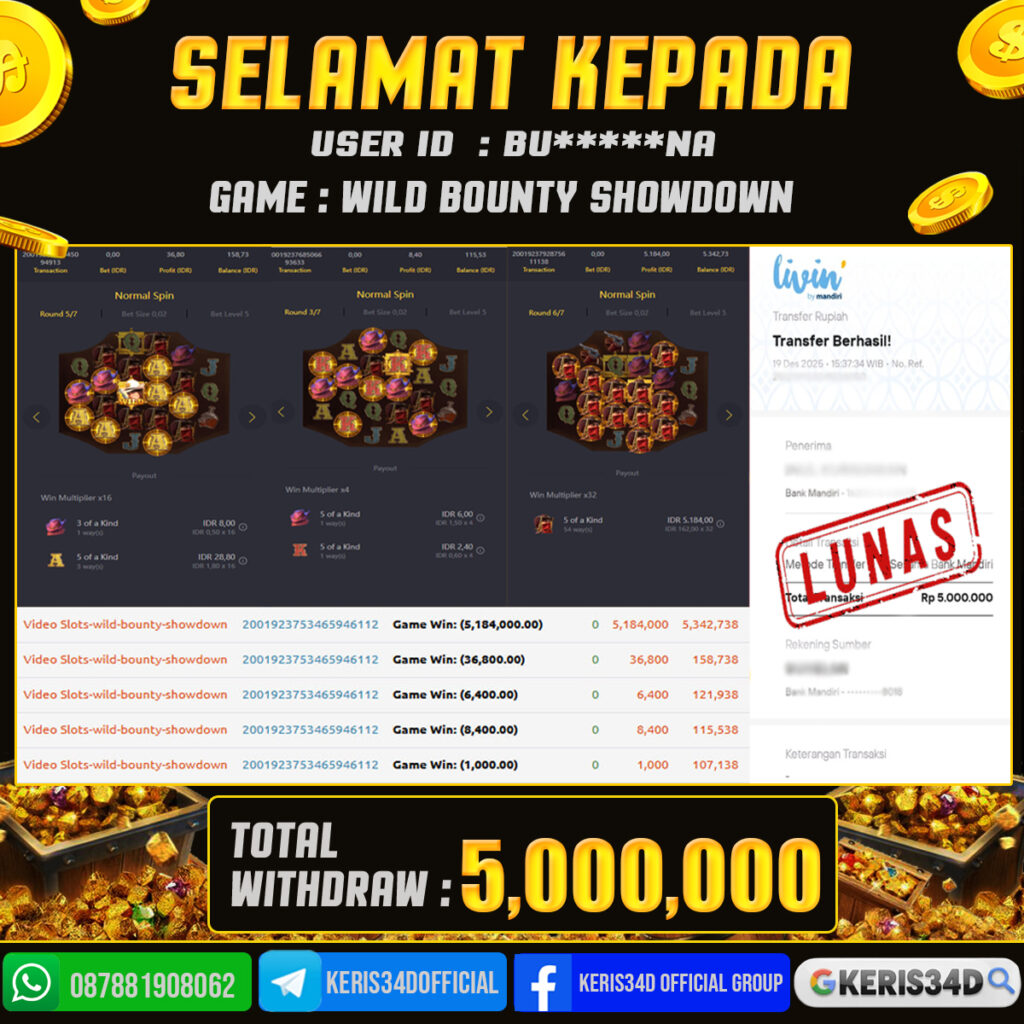KERIS34D dikenal sebagai situs terpercaya yang selalu menghadirkan pengalaman bermain slot online yang aman, fair, dan berlisensi resmi. Di sini, kami tidak hanya sekadar memberikan janji, tapi bukti nyata berupa slip kemenangan yang dapat Anda lihat secara langsung.