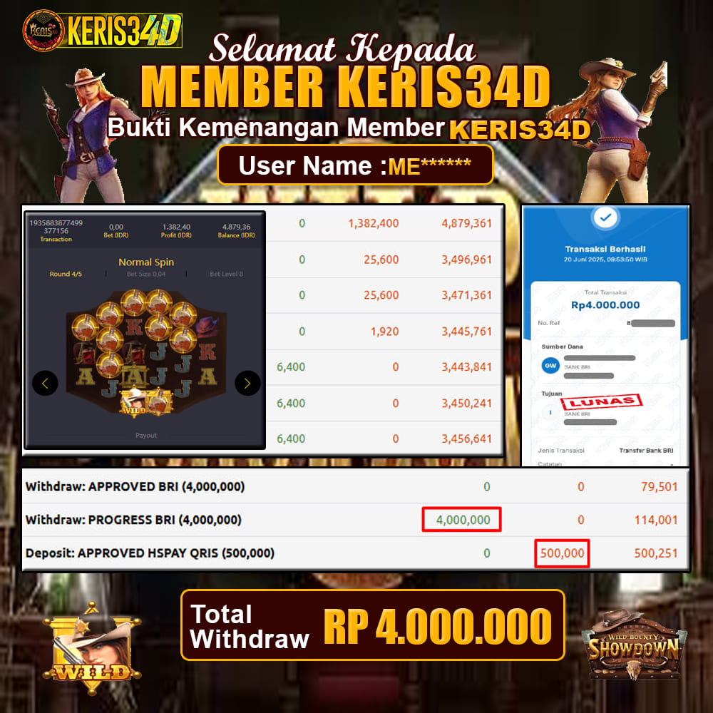 Setiap hari, member KERIS34D berhasil meraih jackpot besar dari berbagai provider slot ternama yang kami sediakan, seperti Pragmatic Play, Habanero, PG Soft, dan masih banyak lagi. Kami secara rutin menampilkan bukti screenshot atau rekapan kemenangan yang berhasil diraih, mulai dari kemenangan ratusan ribu hingga puluhan juta rupiah. Semua slip kemenangan ini kami hadirkan untuk membuktikan bahwa di KERIS34D, peluang menang itu nyata