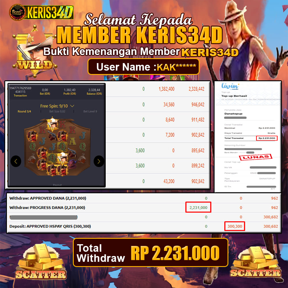 TOTAL KEMENANGAN : Rp. 2.231.000