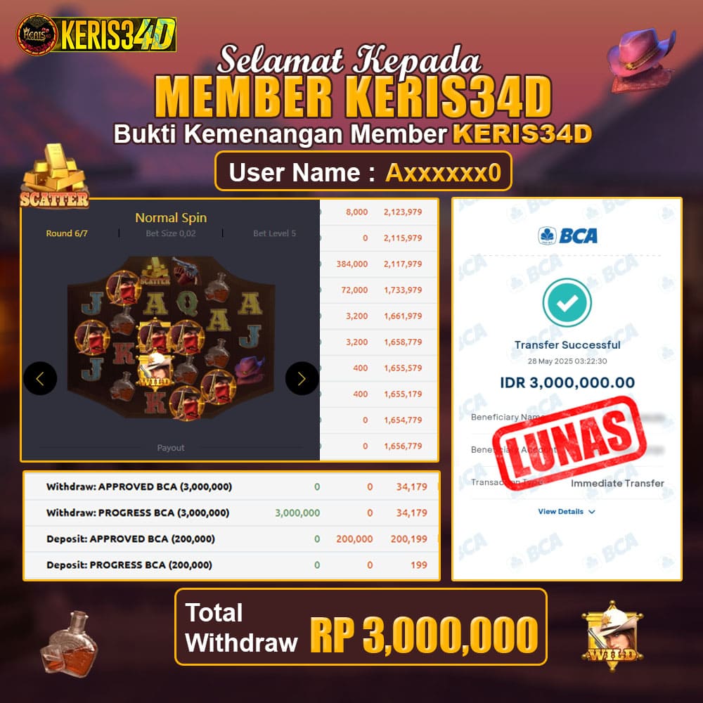 Setiap hari, member KERIS34D berhasil meraih jackpot besar dari berbagai provider slot ternama yang kami sediakan, seperti Pragmatic Play, Habanero, PG Soft, dan masih banyak lagi. Kami secara rutin menampilkan bukti screenshot atau rekapan kemenangan yang berhasil diraih, mulai dari kemenangan ratusan ribu hingga puluhan juta rupiah. Semua slip kemenangan ini kami hadirkan untuk membuktikan bahwa di KERIS34D, peluang menang itu nyata