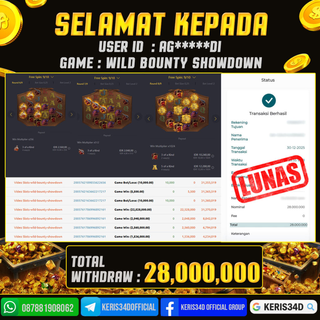 KERIS34D dikenal sebagai situs terpercaya yang selalu menghadirkan pengalaman bermain slot online yang aman, fair, dan berlisensi resmi. Di sini, kami tidak hanya sekadar memberikan janji, tapi bukti nyata berupa slip kemenangan yang dapat Anda lihat secara langsung.