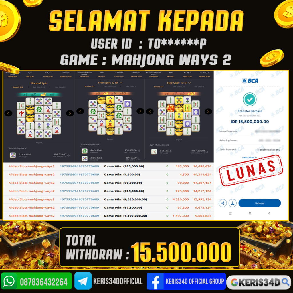 TOTAL KEMENANGAN : Rp. 15.500.000